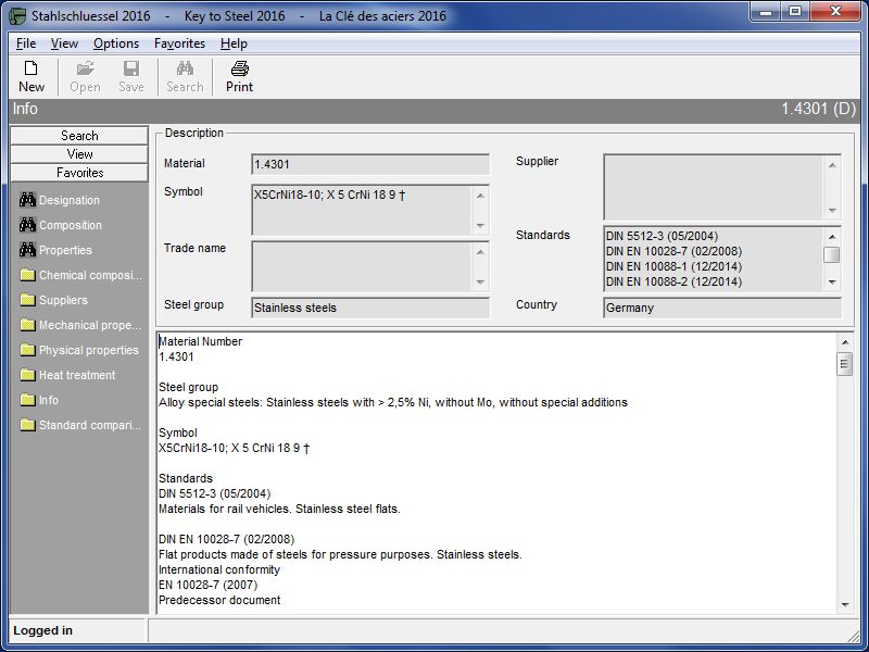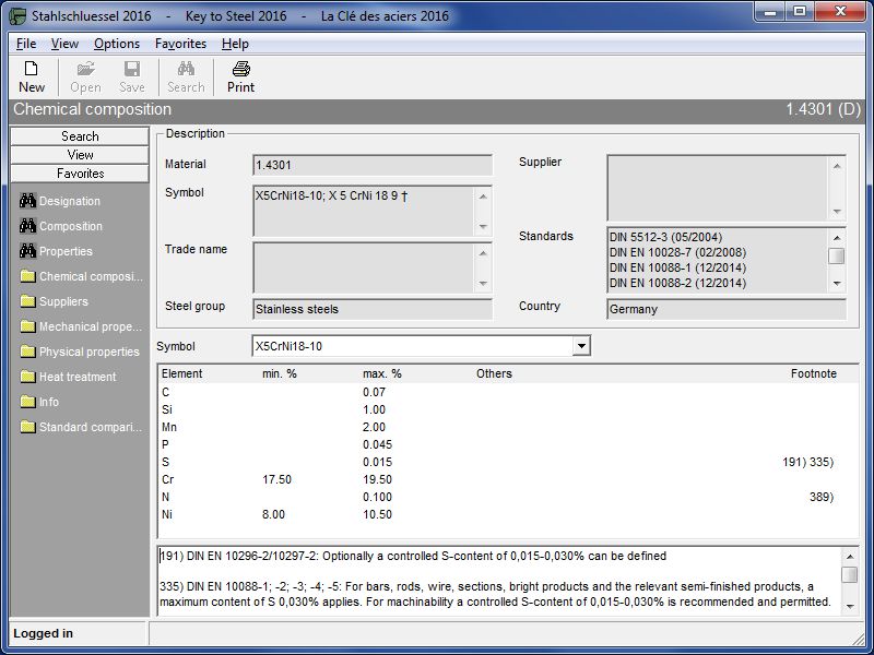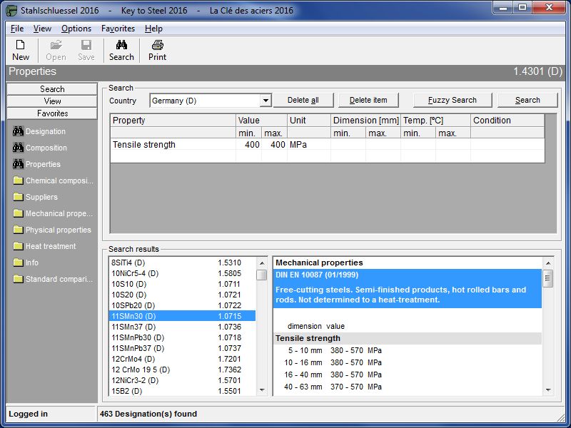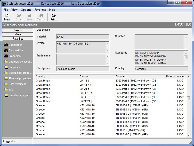 More than 70.000 standards and steel-brands of approx. 300 steelworks and suppliers.