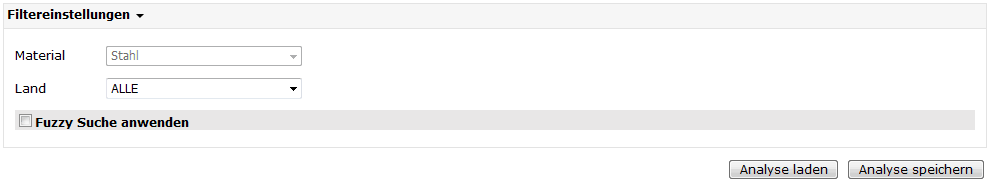Durch die Wahl <alle> kann nach Analysen aller Länder gleichzeitig gesucht werden. Durch die Wahl eines Landes wird die Suche auf dieses Land beschränkt.