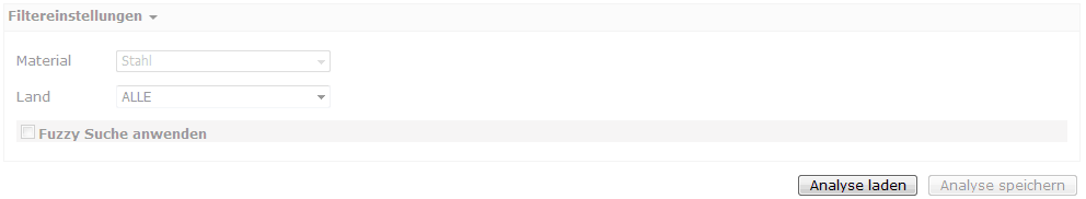 | Toleranz max. % | Vorgabe einer Toleranz in % für den Max.-Wert. Dadurch wird eine Abweichung der Werkstoffwerte zu den Suchwerten um die eingegebene Toleranz erlaubt. |