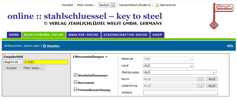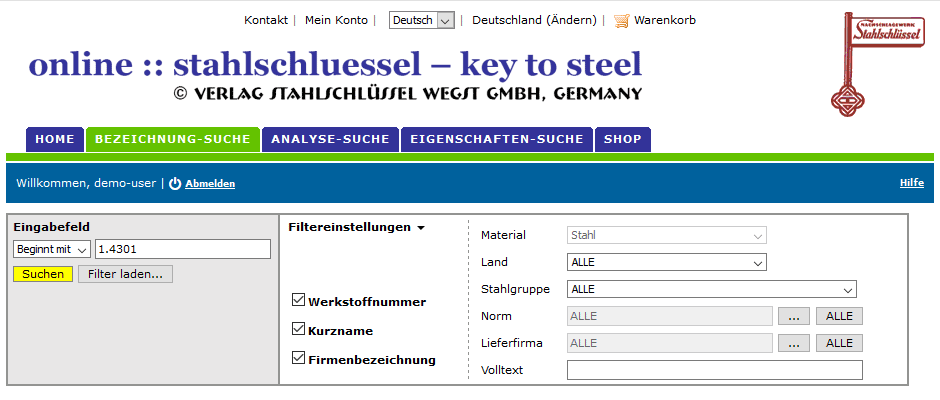 Suchen Sie mit Hilfe unserer Bezeichnung-Suche nach einem Werkstoff, indem Sie eine Bezeichnung (Werkstoffnummer, Kurzname oder Firmenbezeichnung) eingeben.