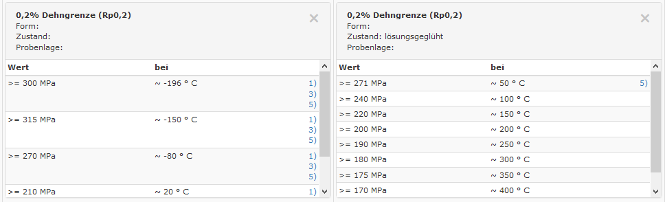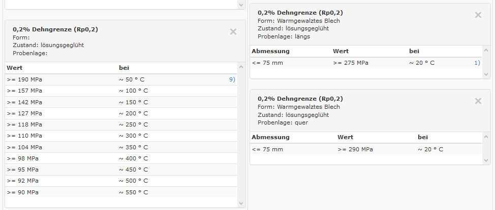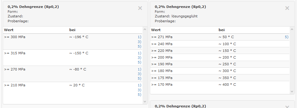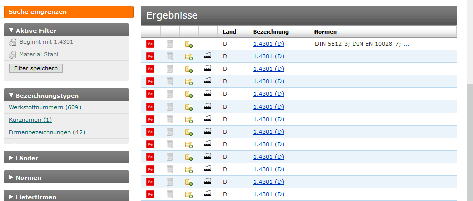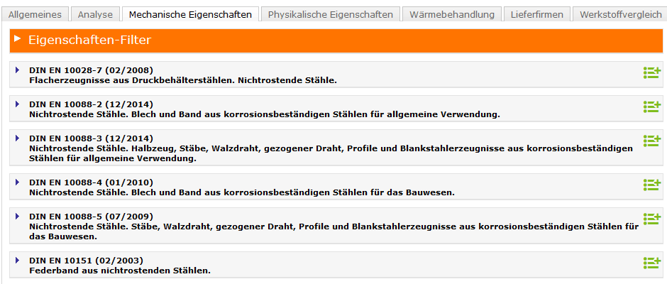 Öffnen Sie als nächstes das Werkstoffdatenblatt des gewünschten Werkstoffs, indem Sie auf die entsprechende Bezeichnung klicken.